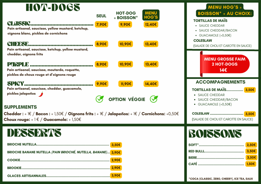 Tarifs indiqués : consommation sur place. Les prix en livraison incluent les frais des plateformes. COMMANDER