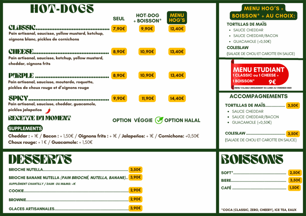 COMMANDER Tarifs indiqués : consommation sur place. Les prix en livraison incluent les frais des plateformes.